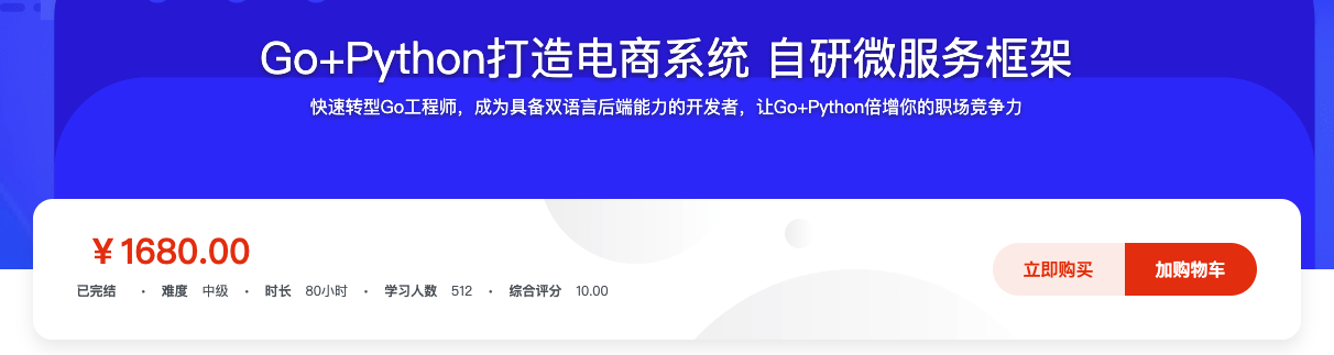 - 视频:1-1 Go+Python双语言混合开发-课程导学 (11:35)试看